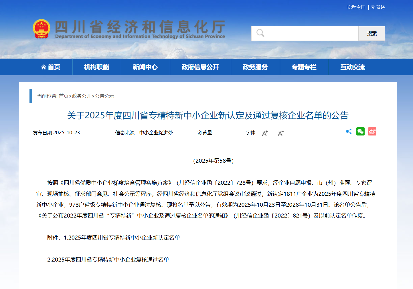 日前,四川省经济和信息化厅对2025年度四川省专精特新中小企业拟通过名单予以公示,四川省共计1811家企业上榜。其中,成都共有1056家企业上榜,四川众班科技有限公司(以下简称“众班科技”)成功入选“专精特新”企业。